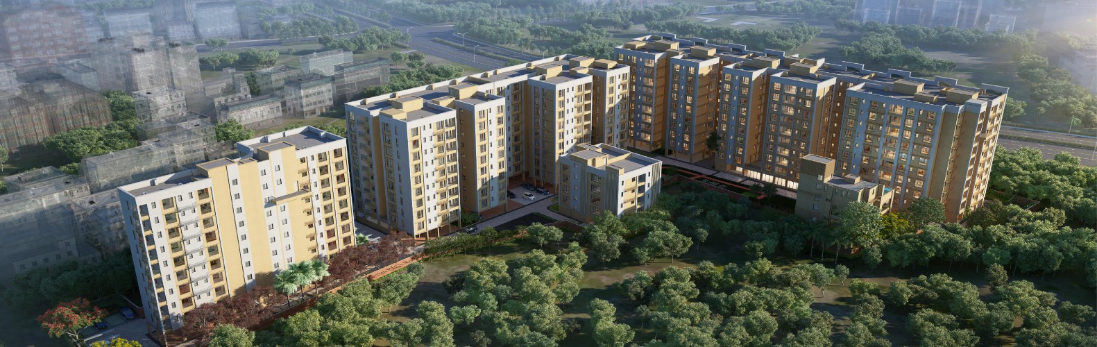 New Town is well-connected to other parts of city by road, which passes through the heart of this suburb. Prominent shopping malls, movie theatres, school, and hospitals are present in proximity of this residential project.